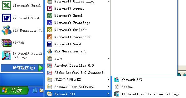 1、點擊“開始”→“程序” →“Network Fax” →“Network Fax”,打開網(wǎng)絡(luò)傳真應(yīng)用程序