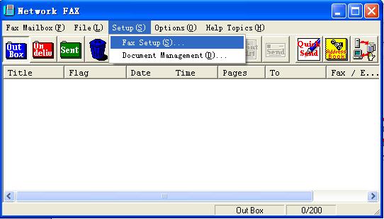 2、在彈出的窗口中點擊“Setup”→“Fax Setup”,彈出網(wǎng)絡(luò)傳真設(shè)置對話框
