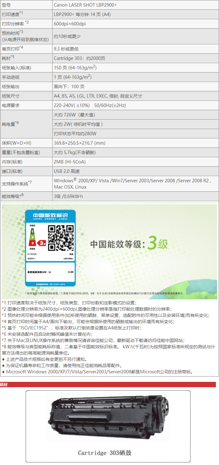 佳能LBP 2900+ 主要功能及配置參數(shù):