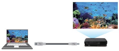 只需通過一根USB 線,就可將電腦與投影機連接,實現聲音與圖像的傳輸。