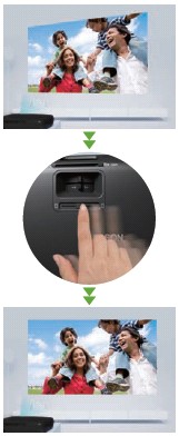 通過機身上的水平梯形校正滑鈕即可調節水平方向的圖像變形,而垂直方向的變形投影機會自動校正,雙向的梯形校正功能讓投影機的擺放位置更加靈活。